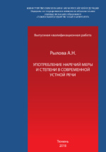 Употребление наречий меры и степени в современной устной речи: выпускная квалификационная работа (бакалаврская работа) : студенческая научная работа / А. Н. Рылова ; Тюменский государственный университет, Институт социально-гуманитарных наук, Кафедра русского языка. - Тюмень, 2018. -