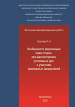 Особенности реализации прав сторон при рассмотрении уголовных дел с участием присяжных заседателей : студенческая научная работа / А. Н. Трохова ; Северный (Арктический) федеральный университет им. М. В. Ломоносова. - Архангельск : б. и., 2020. -