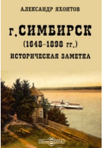 Г. Симбирск (1648-1898 гг.). Историческая заметка / А. Н. Яхонтов. - Симбирск : Типо-литография А. Т. Токарева, 1898. -