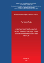 Синтаксический анализ web-страниц посредством языка программирования Python: выпускная квалификационная работа : студенческая научная работа / А. О. Рычков ; Тюменский государственный университет, Тобольский педагогический институт им. Д. И. Менделеева (филиал) Тюменского государственного университета, Отделение среднего профессионального образования. - Тобольск, 2017. -52 с.