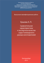 Сравнительная характеристика и экспертиза качества сыра Голландского разных изготовителей: выпускная квалификационная работа : студенческая научная работа / А. П. Ершова. - Екатеринбург : б. и., 2019. -65 с.