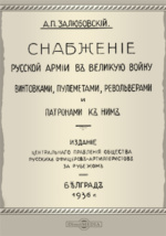 Снабжение Русской армии в Великую войну винтовками, пулеметами, револьверами и патронами к ним / А. П. Залюбовский. - Белград : Издание центрального правления общества русских офицеров-артиллеристов за рубежом, 1936. -