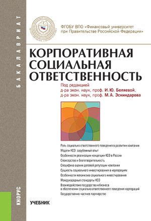 Корпоративная социальная ответственность. : учебник / И. Ю. Беляева, М. А. Эскиндаров, Х. П. Харчилава [и др.] ; под ред. И. Ю. Беляевой, М. А. Эскиндарова. — Москва : КноРус, 2024. — 316 с. — ISBN 978-5-406-12372-0.