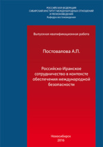 Российско-Иранское сотрудничество в контексте обеспечения международной безопасности: выпускная квалификационная работа : студенческая научная работа / А. П. Постовалова ; Сибирский институт международных отношений и регионоведения, Кафедра востоковедения. - Новосибирск, 2016. -