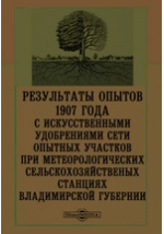 Результаты опытов 1907 года с искусственными удобрениями сети опытных участников при метеорологических сельскохозяйственых станциях Владимирской губернии / А. П. Черный ; сост. А. П. Черный, сост. М. А. Севитов. - Владимир на Клязьме : Типо-литография Губернской Земской Управы, 1908. -97 с.