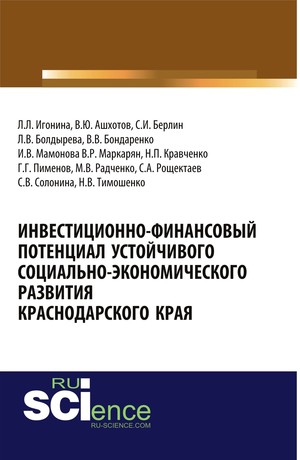Инвестиционно-финансовый потенциал устойчивого социально-экономического развития Краснодарского края : монография / Л. Л. Игонина, В. Ю. Ашхотов, С. И. Берлин [и др.]. — Москва : Русайнс, 2018. — 259 с. — ISBN 978-5-4365-1951-7.