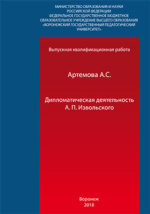 Дипломатическая деятельность А. П. Извольского: выпускная квалификационная работа бакалавра : студенческая научная работа / А. С. Артемова. - Воронеж, 2018. -67 с.