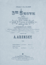 3-me Suite (Variations) pour 2 Pianos a 4 mains : нотное издание / А. С. Аренский. - Москва : Изд. П. Юргенсона, . -