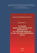Улучшение финансовых результатов деятельности АО «Псковский завод АДС» за счет участия в электронных торгах» : студенческая научная работа / А. С. Васильева. - Псков : б. и., 2020. -121 с.