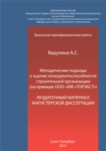 Методические подходы к оценке конкурентоспособности строительной организации (на примере ООО «ИФ «ТОРЭКСТ»): раздаточный материал магистерской диссертации : студенческая научная работа / А. С. Варулина ; Санкт-Петербургский государственный экономический университет, Кафедра организации и управления в строительстве. - Санкт-Петербург, 2015. -16 с.