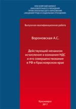 Действующий механизм исчисления и взимания НДС и его совершенствование в РФ и Красноярском крае: выпускная квалификационная работа (бакалаврская работа) : студенческая научная работа / А. С. Вороновская ; Красноярский филиал Академии труда и социальных отношений, Кафедра финансов и кредита. - Красноярск, 2017. -
