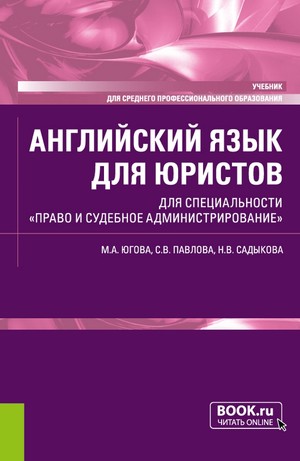 Югова, М. А. Английский язык для юристов. Для специальности Право и судебное администрирование : учебник / М. А. Югова, С. В. Павлова, Н. В. Садыкова. — Москва : КноРус, 2024. — 278 с. — ISBN 978-5-406-12284-6.