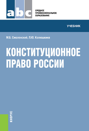 Смоленский, М. Б., Конституционное право России : учебник / М. Б. Смоленский, Л. Ю. Колюшкина, Е. В. Маркина. — Москва : КноРус, 2014. — 216 с. — (для ссузов). — ISBN 978-5-406-03409-5.