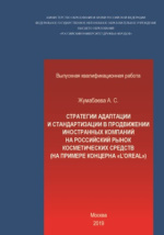 Стратегии адаптации и стандартизации в продвижении иностранных компаний на российский рынок косметических средств: (на примере концерна «L’Oreal») : студенческая научная работа / А. С. Жумабаева. - Москва : б. и., 2019. -