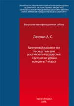 Церковный раскол и его последствия для российского государства: изучение на уроках истории в 7 классе : выпускная квалификационная (бакалаврская) работа : студенческая научная работа / А. С. Ленская ; Историко-филологический факультет, Кафедра истории и археологии. - 2018. -