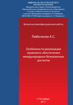 Особенности реализации правового обеспечения международных безналичных расчетов: выпускная квалификационная работа : студенческая научная работа / А. С. Любенкова ; Федеральное агентство морского и речного транспорта, Государственный университет морского и речного флота им. С. О. Макарова, Институт международного транспортного менеджмента, Кафедра теории и истории государства и права. - Санкт-Петербург, 2017. -63 с.