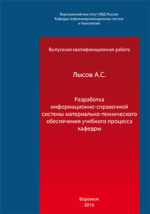 Разработка информационно-справочной системы материально-технического обеспечения учебного процесса кафедры: дипломная работа : студенческая научная работа / А. С. Лысов ; Воронежский институт МВД России, Кафедра инфокоммуникационных систем и технологий. - Воронеж, 2016. -