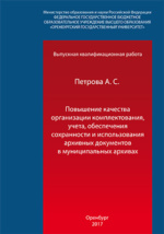 Повышение качества организации комплектования, учета, обеспечения сохранности и использования архивных документов в муниципальных архивах: выпускная квалификационная работа : студенческая научная работа / А. С. Петрова ; Оренбургский государственный университет, Институт менеджмента, Кафедра государственного и муниципального управления. - Оренбург, 2017. -