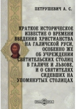 Краткое историческое известие о времени введения христианства на Галичской Руси, особенно же об учреждении святительских столиц в Галиче и Львове, и о святителях сидевших на упомянутых столицах / А. С. Петрушевич. - Львов : Типография Ставропигийского института, 1882. -17 с.
