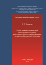 Роль и значение постановлений Конституционного Суда РФ и Верховного Суда РФ при регулировании уголовно-процессуальных отношений : студенческая научная работа / А. С. Селюкова ; Всероссийский государственный университет юстиции (РПА Минюста России), Санкт-Петербургский институт (филиал), Кафедра уголовного права и процесса. - Санкт-Петербург : б. и., 2022. -