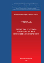 Разработка рецептуры и технологии желе на основе березового сока: выпускная квалификационная работа : студенческая научная работа / А. С. Титова ; Новгородский государственный университет им. Ярослава Мудрого, Институт сельского хозяйства и природных ресурсов, Кафедра технологии переработки сельскохозяйственной продукции. - Великий Новгород, 2017. -