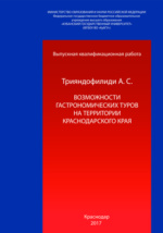 Возможности гастрономических туров на территории Краснодарского Края: выпускная квалификационная работа : студенческая научная работа / А. С. Трияндофилиди ; Кубанский государственный технологический университет (КубГТУ), Институт среднего профессионального образования. - Краснодар, 2017. -