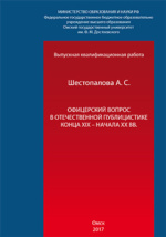 Офицерский вопрос в отечественной публицистике конца XIX - начала XX вв.: выпускная квалификационная работа : студенческая научная работа / А. С. Шестопалова ; Министерство образования и науки Российской Федерации, Омский государственный университет им. Ф. М. Достоевского, Исторический факультет, Кафедра современной отечественной истории и историографии. - Омск, 2017. -