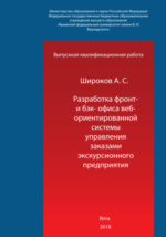 Разработка фронт- и бэк- офиса веб-ориентированной системы управления заказами экскурсионного предприятия: выпускная квалификационная работа : студенческая научная работа / А. С. Широков ; Крымский федеральный университет им. В. И. Вернадского, Гуманитарно-педагогическая академия (филиал) в г. Ялта, Институт экономики и управления, Кафедра информатики и информационных технологий. - Ялта, 2018. -