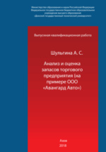 Анализ и оценка запасов торгового предприятия: на примере ООО Авангард Авто : выпускная квалификационная (бакалаврская) работа : студенческая научная работа / А. С. Шульгина ; Донской государственный технический университет (ДГТУ), Технологический институт (филиал) ДГТУ в г. Азове, Факультет высшего образования, Кафедра экономики и менеджмента. - Азов, 2018. -