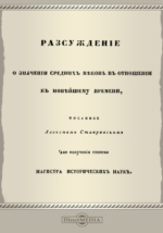 Рассуждение о значении средних веков в отношении к новейшему времени / А. Ставровский. - Киев : Университетская типография, 1841. -