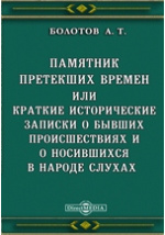 Памятник претекших времен или краткие исторические записки о бывших происшествиях и о носившихся в народе слухах / А. Т. Болотов. - Москва : Тип. В. Исленьева, 1875. -315 с.