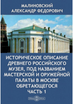 Историческое описание древнего российского музея: под названием Мастерской и Оружейной палаты в Москве обретающегося / А. Ф. Малиновский. - Москва : Типография Императорского Московского Университета, 1807. -