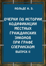 Очерки по истории кодификации местных гражданских законов при графе Сперанском / А. Э. Нольде. - Санкт-Петербург : Сенатская типография, 1914. -670 с.