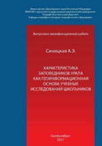 Характеристика заповедников Урала как геоинформационная основа учебных исследований школьников: выпускная квалификационная работа : студенческая научная работа / А. Э. Синицкая ; Уральский государственный педагогический университет, Географо-биологический факультет, Кафедра географии и методики географического образования. - Екатеринбург, 2017. -