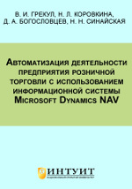 Автоматизация деятельности предприятия розничной торговли с использованием информационной системы Microsoft Dynamics NAV : учебное пособие / В. И. Грекул, Н. Л. Коровкина, Д. А. Богословцев, Н. Н. Синайская ; Национальный открытый университет «ИНТУИТ». - Москва : Интернет-Университет Информационных Технологий (ИНТУИТ) |Бином. Лаборатория знаний, 2008. - 183 с. - ISBN 978-5-94774-979-3 .