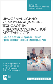 Информационно-коммуникационные технологии в профессиональной деятельности. Разработка и применение презентационных материалов : учебное пособие для СПО / И. В. Сергиенко, Р. Ф. Габбасов, М. А. Крымова, Е. Б. Сергиенко. — Санкт-Петербург : Лань, 2026. — 92 с. — ISBN 978-5-507-54222-2.