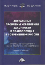 Актуальные проблемы укрепления законности и правопорядка в современной России: материалы Всероссийской научно-практической конференции, Москва, 30 марта 2022 г. : материалы конференций / сост. И. Ю. Никодимов, под ред. В. Ю. Голубовский, под ред. И. А. Бурмистров, Московский государственный университет технологий и управления им. К. Г. Разумовского (Первый казачий университет). - Москва : Дашков и К°, 2022. - 466 с. - ISBN 978-5-394-05153-1 .