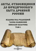 Акты, относящиеся до юридического быта древней России / ред. Н. В. Калачов. - Санкт-Петербург : Типография Императорской Академии наук, 1857. - 397 с.