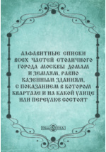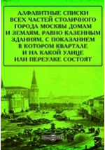 Алфавитные списки всех частей столичного города Москвы домам и землям: равно казенным зданиям, с показанием в котором квартале и на какой улице или переулке состоят : справочник. - Москва : Типография С. Селивановского, 1818. - 649 с.