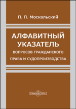 Алфавитный указатель вопросов гражданского права и судопроизводства, разрешенных Гражданским Кассационным Департаментом Правительствующего Сената в решениях 1876–1884 годов : справочник / сост. П. П. Москальский. - Санкт-Петербург : Типо-лит. А. Е. Ландау, 1885. - 737 с.