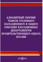 Алфавитный сборник тезисов уголовного кассационного и общего собрания кассационных департаментов Правительствующего Сената 1874-1886 : практическое пособие / сост. А. А. Орлов. - Самара : Типография И. П. Новикова, 1888. - 433 с.