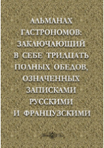 Альманах гастрономов: заключающий в себе тридцать полных обедов, означенных записками русскими и французскими... и практическое руководство для кухни : практическое руководство / сост. И. М. Радецкий. - Санкт-Петербург : Типография Штаба Отдельного корпуса внутренней стражи, 1852. - 349 с.