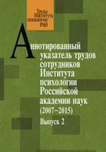 Аннотированный указатель трудов сотрудников Института психологии Российской академии наук за 2007–2015 годы : информационное издание / авт.-сост. Т. И. Артемьева, отв. ред. А. Л. Журавлев, отв. ред. В. А. Кольцова, Институт психологии Российской академии наук. - Москва : Институт психологии РАН, 2018. - 152 с. - ISBN 978-5-9270-0379-2 .