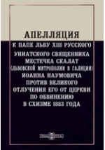 Апелляция к папе Льву XIII русского униатского священника местечка Скалат (львовской митрополии в Галиции) Иоанна Наумовича против великого отлучения его от церкви по обвинению в схизме 1883 года. - Б. м. : б. и., 1883. - 70 с.