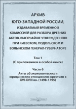 Архив Юго-Западной России: издаваемый Временной комиссией для разбора древних актов, состоящем при Киевском, Подольском и Волынском Генерал-Губернаторе. - Киев : Типография Е. Я. Федорова, 1868. - 1050 с.
