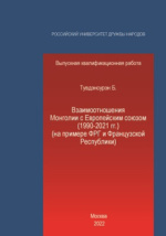 Взаимоотношения Монголии с Европейским союзом (1990-2021 гг.): (на примере ФРГ и Французской Республики) : студенческая научная работа / Б. Тувдэнсурэн ; Российский университет дружбы народов им. Патриса Лумумбы (РУДН), Факультет гуманитарных и социальных наук, Кафедра теории и истории международных отношений. - Москва : б. и., 2022. -