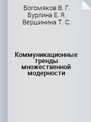 Коммуникационные тренды множественной модерности : монография / В. Г. Богомяков, Е. Я. Бурлина, Т. С. Вершинина [и др.]. — Екатеринбург : УрФУ, 2016. — 132 с. — ISBN 978-5-7996-1984-8.