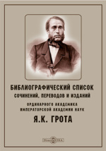 Библиографический список сочинений, переводов и изданий ординарного академика Императорской Академии наук Я. К. Грота: с приложением некоторых документов, относящихся к празднованию пятидесятилетия его ученой и литературной деятельности / сост. С. И. Пономарев. - Санкт-Петербург : Типография Императорской Академии наук, 1883. - 58 с.