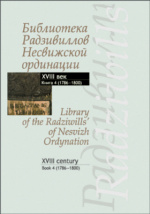 Библиотека Радзивиллов Несвижской ординации: каталог изданий из фонда Центральной научной библиотеки имени Якуба Коласа Национальной академии наук Беларуси: XVIII век : библиографическое издание / сост. А. В. Стефанович, сост. М. М. Лис, гл. ред. А. И. Груша, ред. библиогр. зап. О. М. Дрозд, ред. библиогр. зап. И. Л. Мурашова, Национальная академия наук Беларуси, Центральная научная библиотека им. Якуба Коласа. - Минск : Беларуская навука, 2015. - 584 с. - ISBN 978-985-08-1624-5. – ISBN 978-985-08-1822-5 (кн. 4) .