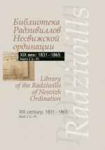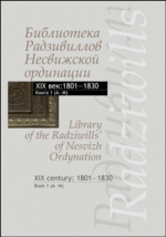 Библиотека Радзивиллов Несвижской ординации: каталог изданий из фондов Центральной научной библиотеки им. Якуба Коласа Национальной академии наук Беларуси : XIX век: 1801—1830 : библиографическое издание / сост. А. В. Стефанович, сост. М. М. Лис, пер. на англ. Т. И. Жук. - Минск : Беларуская навука, 2016. - 608 с. - ISBN 978-985-08-1938-3. – ISBN 978-985-08-2030-3 (кн. 2) .
